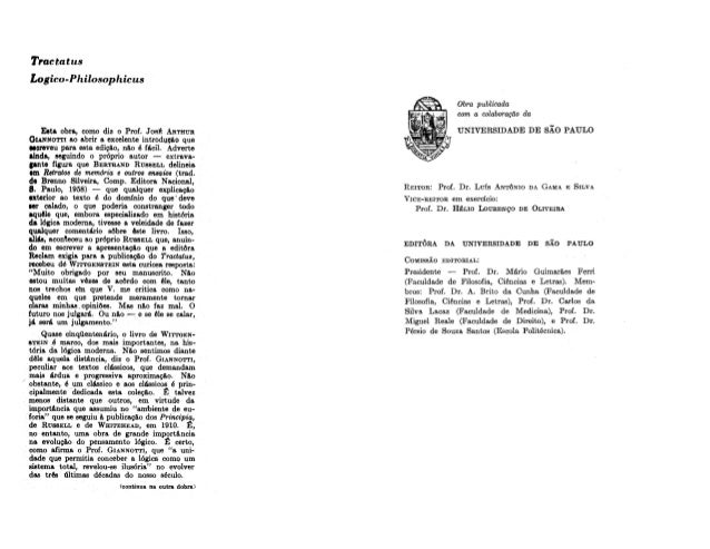 - 1. Obra publicada com a colaboração da UNIVERSIDADE DE SÃO PAULO REITOR: Prof. Dr. Luís ANTÔNIO DA GAMA E SILVA VICE-REITOR em exercício:Prof. Dr. HÉLIO LOURENÇO DE OLIVEIRA Tractatus Logico-Philosophicus